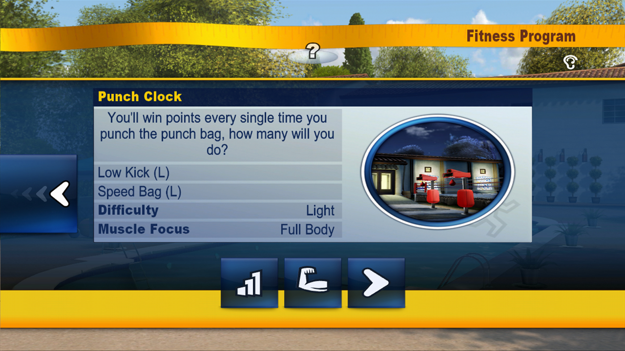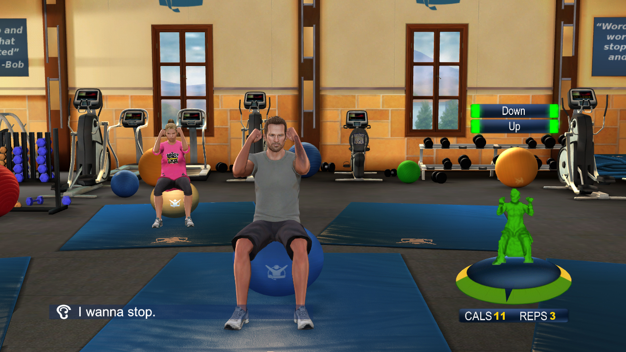 Once the software starts up you would be advised to follow the initial set up tutorial and create a custom workout whereby you are assessed by one of the TV show’s trainers. This consists of a workout of increasing intensity on which you will provide feedback (via voice control). After this is completed the game will recommend a level for you to start at.