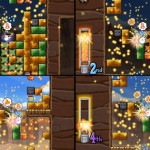 Control wise it’s all nice and easy – the left analog moves your character, A jumps and B zaps, which is used to break apart the blocks that appear all over each level (and also give any nearby enemies a quick jolt). Once your Frenzy bar is filled (by topping up with the yellow potion jars or by running through fuzzy yellow square sections) you can hold the left trigger to activate Frenzy mode, which lets you run and zap a lot quicker – handy for bigger jumps and for making a dash for the finish line.