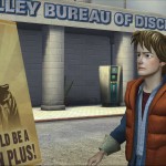 [boxout]As soon as you hurtle into the opening of Back to the Future: Episode 3, you’ll notice things are very different; not just from the first two episodes. Hill Valley has changed, Doc has changed, Jennifer (Marty’s girlfriend) has changed and the whole of 1986 is a twisted version of its former self. Something has gone majorly wrong in the timeline – you did make sure to tie all of those little loose ends in 1931, didn’t you? Thankfully, Jennifer’s there to help you get out of the trouble you’re in during the opening sequence… or not; apparently she’s different and not into you in this timeline, so it takes some persuasion to get her to help. This opening paves the way for the rest of the episode; you won’t be getting much help from anyone without a lot of persuasion.They’re not all like the delinquent Jennifer, though; far from it. The alternate timeline Doc has turned Hill Valley into the perfect city: enforced daily uniform, electric cars (golf buggies), strict law enforcement, which includes punishment for carrying forbidden items such as bubblegum or alcohol, and the buildings are all very clean and pretty. It’s nice to see this take on Hill Valley and it’s very interesting to explore; you know your way around from the previous games, but the changes make it feel like a new place. However, you won’t be able to fully explore due to the abundance of invisible walls around certain sections.