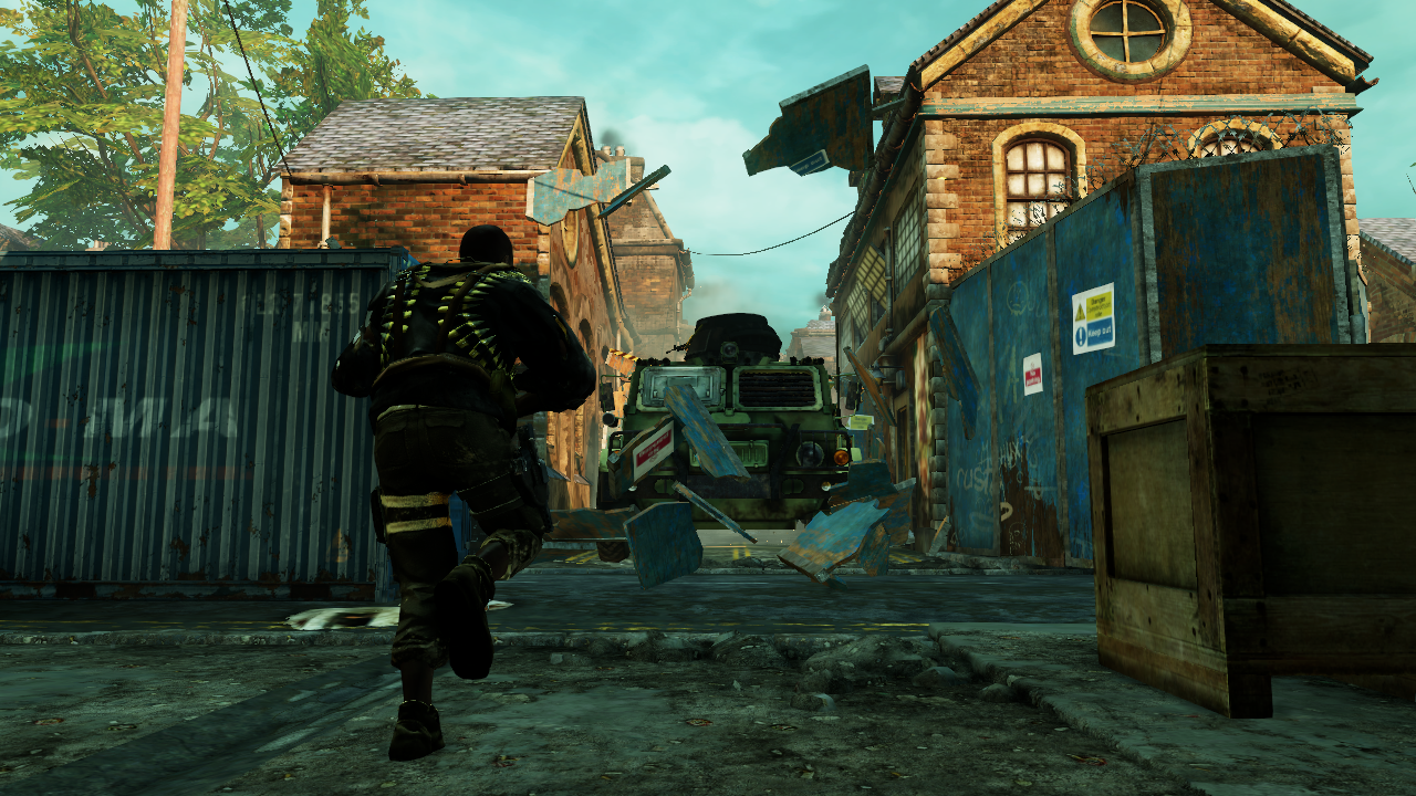 Both the warehouse and pub have two stages of elevation allowing for tactical defensive play as well as two sunken alleyways on either side. No matter where you spawn, chances are, you’re going to end up circling the courtyard whilst scouting or attempting to flank enemies. There’s scope for both mid and short range gunfights, with ample opportunity for wannabe snipers who don’t mind climbing to higher ground. You’ll also notice that, upon launching London Streets, a number of alleys are obstructed by wooden gates. As matches progress, these will be torn down at certain intervals as militarised riot vans pour onto the scene. They’re not quite as lethal as Plaza’s chopper or Village’s tank, though taking hits also inflicts heavy slowdown. It may not be canonical but it’s a much appreciated dynamic twist to an already impressive board.