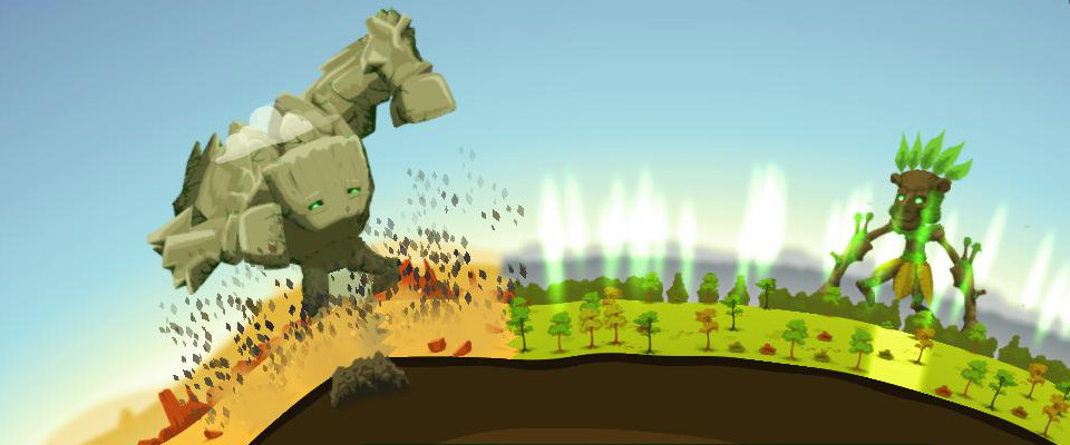 You are a planet and you can interact with your surface by using four giants, each of which can alter the planet in different ways. They can spawn biomes on your planet, which begins as a dry wasteland that can’t support life. The rock giant, for example, can place mountains while the forest giant can place – yes – forests. Swamps and forests need to be placed in the wet wasteland that appears around oceans when you place them, while mountains spread desert outwards on dry wasteland until it either meets another biome or reaches its maximum size.