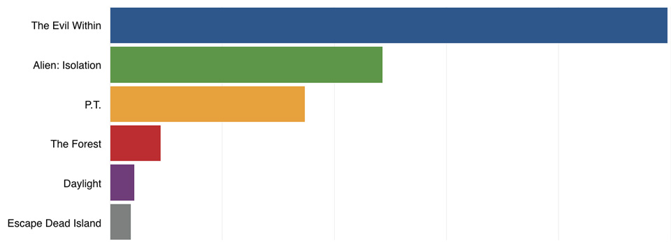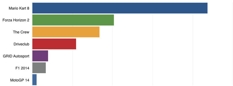Once everything was counted, we eliminated any games that had garnered less than one per cent of the total vote. This was simply a measure to keep our graphs readable and it meant that we filtered out the hilarious joke entries one or two people chose to put in the text input box. The remaining results were recalculated to work out their new percentage based on the titles that were left (those that scored more than 1% of total votes).