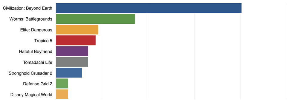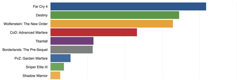 The top six features games from four different categories, ably demonstrating the range and balance of tastes among the TSA Community. We also get to ninth position before we encounter an exclusive game, with only three console exclusives appearing in any position. That’s a great indication of the strength of third party publishers this year, which might be a little unexpected, given how early we are in the new console’s life spans.