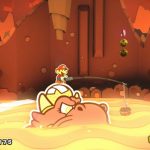 Color Splash begins with the macabre discovery of a folded-up, colour drained Toad in your mail. With a touch of detective work, the postmark leads you to Prism Island wherein you find the main port deserted and it’s main tourist attraction the Colour Fountain deeply lacking in paint, with various parts of the town also having been sucked dry of colour. It’s here that you meet Huey, a talking paint can who serves as the guardian of the fountain, and he sets out with you on a quest to regain the paint and re-colour the land.