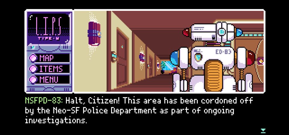 The voice acting is 2064: Read Only Memories’ big change to the original Read Only Memories, bringing on the likes of Melissa Hutchison, Jim Sterling, Austin Creed (aka WWE’s Xavier Woods). The voice work is top notch giving a lot of life to the sprites on screen, and I can’t really think of an instance where it wasn’t delivered well. The situations the characters find themselves in become believable no matter how far-fetched, like a butler who happens to be an actual polar bear, due to the way the tone and emotions are conveyed.