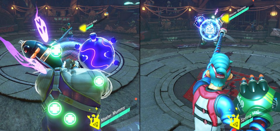 It’s a big improvement over the Wii’s debut and Wii Sport’s more suggestive than accurate motion controls. At the very least, it’s equivalent to how that system was augmented with the MotionPlus add on and the improved Wii Remote that added more and more nuanced motion sensors to the system, though obviously the array of sensors needed for accurate motion tracking have improved and shrunk in the intervening time. ARMS doesn’t necessarily need a lot of subtle movement, but there’s a surprising depth to it.