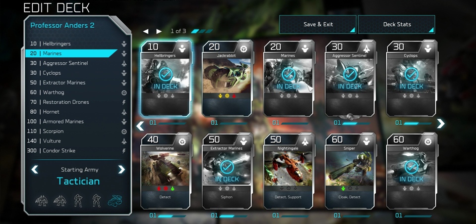 Each deck is only made up of twelve cards, so you’re fairly limited in your choices which forces you to get the right balance, but they can appear in your hand many times through a match. Forming your own deck is incredibly simple and intuitive, and you can easily take it out for a quick spin before coming back and swapping out whatever you think isn’t working. It could be that you don’t have enough anti-air, or that you found yourself stuck by having too many high energy cost cards.