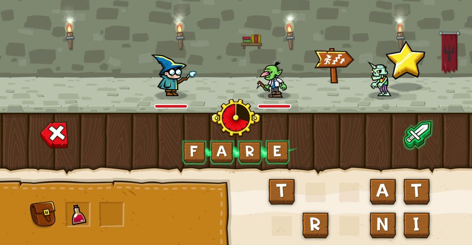 One key design decision in Spellspire’s favour, however, is the ability to repeat a word using the circle button. This enables stem words to be recalled instantly so that other letters can be added on. Identifying these words (those after which s or d could be added most commonly) is the key to damaging the bosses that appear every ten levels.