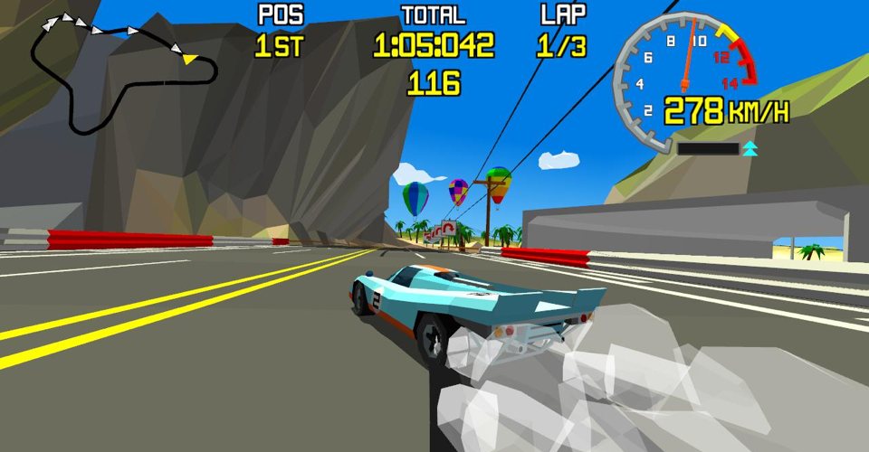 Think back to the glory days of the Sega Saturn and arcade cabinets, and you’ll find the key inspirations for Racing Apex, most specifically in the classic Virtua Racer. The graphics are chunky and polygonal with bright colours that are quite delightfully retro as you race down wide open tracks, drifting through long corners and weaving past your competitors in no time.