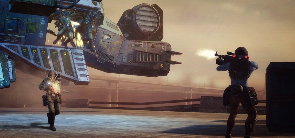 Of course, Nu-Earth isn’t exactly the most hospitable of places after hundreds of years of endless war, so prepare yourself for a slog through muddy brown environments and bland industrial and military buildings. The enemies also aren’t particularly distinctive against this backdrop, and can be a little tricky to pick out, even with Gunnar highlighting those near to where you’re aiming. There’s also a lack of real variety in the enemies you face. Yes, some of them have different shades of combat suit, which could indicate that they’ve got a heavier machine gun or are toting shot guns, but outside of the hulking mechs, they’re all just fodder for Gunnar to chew through, sometimes just taking a bit longer to go down.