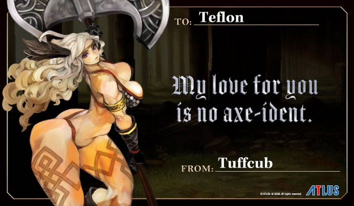 And Finally, you can send some Improbable Boobs to the love of your life! Head over to the Atlus website to pick one of the cards featuring characters from Dragon’s Crown Pro in their full back-breaking, misshapen, thunder-thighed glory.