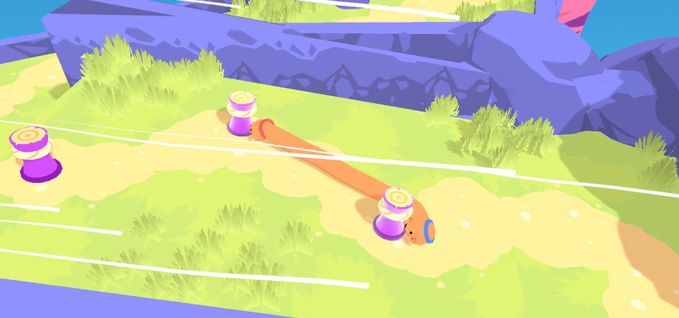 It also showed how far the game’s simplistic core can be taken. All that you can do in Phogs is move, grip and stretch the two ends of the dog. Essentially you just have to use the two analogue sticks, one for each end, and the two shoulder buttons, enabling single pad play. While the game’s developers, BitLoom, were very clear Phogs is ideally designed for co-op, the ability to get everything on a single pad means you can play solo if you feel like it.