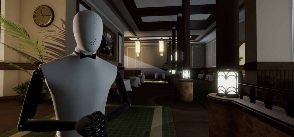 On your way down to breakfast after your creepy wake up call, your phone starts to display some weird messages. It’s here that the game starts to show itself for what it is. It turns out it isn’t just a hotel guest simulator, much to the surprise of everyone who plays it, but rather a first person puzzle game. There are two distinct parts of this game, one of which is the puzzles themselves, which we will get to, the other is a walking simulator style experience in the hotel itself.