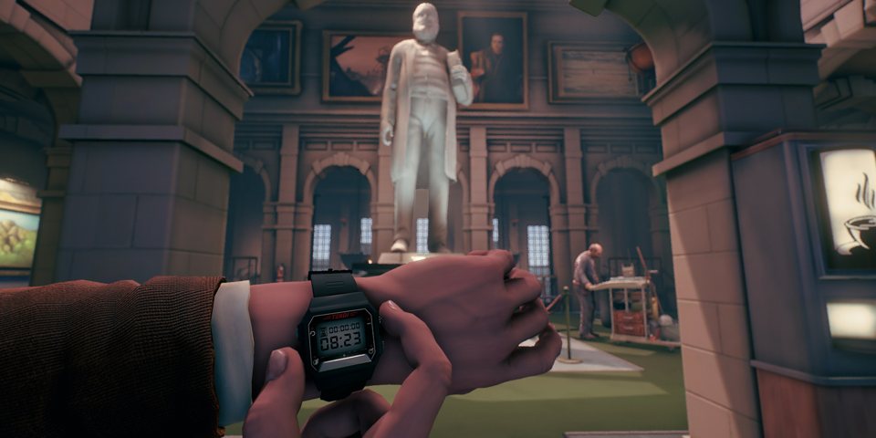 At its heart, The Occupation is a stealth game, as you’ll be spending much of your time rifling through staff only areas while avoiding the security patrol of Steve and Dan. Time is actually a crucial elements of the game. Every minute within the game is a minute in reality and you have a schedule to adhere to. For the main interviews, you’re looking at a gap of an hour between arriving and the meeting, but while an hour sounds like plenty of time to hunt for clues, it really isn’t when taking other factors into account. You have to be wary of the schedules the other character keep, like the security guards and Marlon the cleaner (who is also the nicest character in the game). It can be incredibly stressful when you know there are clues you’re missing, but you just don’t have time to find them all.