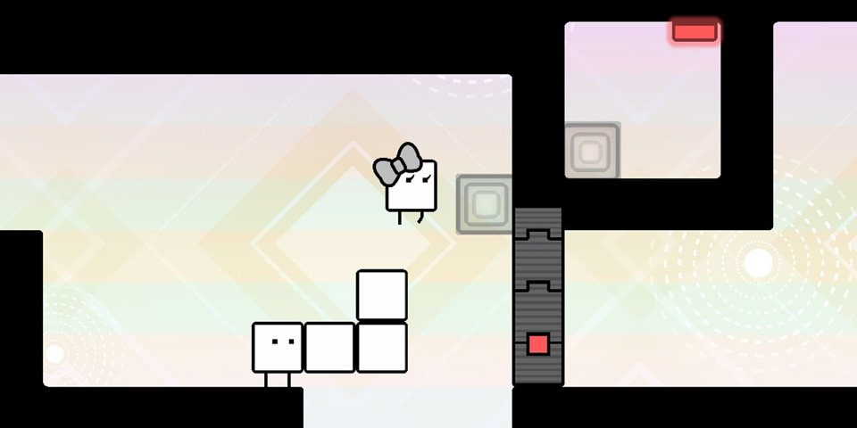 The game is still minimalist, but less so than on 3DS. Where these games were black and white to a fault, there’s more colour thrown into the backgrounds here. Bye-Bye BoxBoy had gradients, but now there’s different patterns and motion. The world map has objects off in the distance and more character tottering around, but it’s also here that the game’s performance issues are most obvious. When there’s multiple elements in motion, the game starts to feel noticeably sluggish. It doesn’t harm the game itself, but you can definitely feel it.