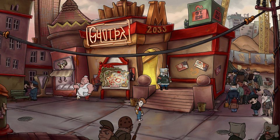 The game plays as you would expect a modern point and click adventure to play. You scan the scenes for items that Evan can look and interact with and people that he can talk to, solving puzzles along the way. The scenes themselves are well drawn and animated with each one having a distinguished style and making it quite obvious what you can interact with. If you’re still not sure then you can highlight all the interactive parts of a scene.