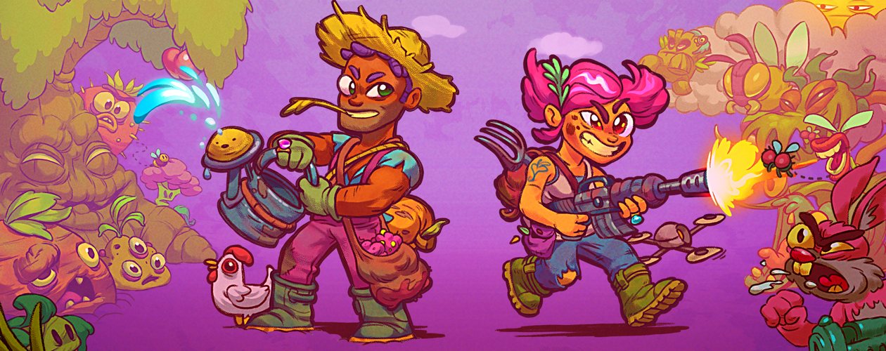 The first and almost overwhelming feeling when first sitting down to play Atomicrops is that there’s a lot to juggle. I’m not talking Stardew Valley’s decisions of what to grow or build next, when to head into town, or who to talk to and romance, which can be a little overwhelming in their own slow-paced way, but the much more immediate pressures of a bullet hell shooter. You really are playing two games at once here, blasting away at enemies that come at you and looking after your small patch of vegetables at the same time, tilling the land, planting seeds, watering them, and doing more than a little bit of weeding.