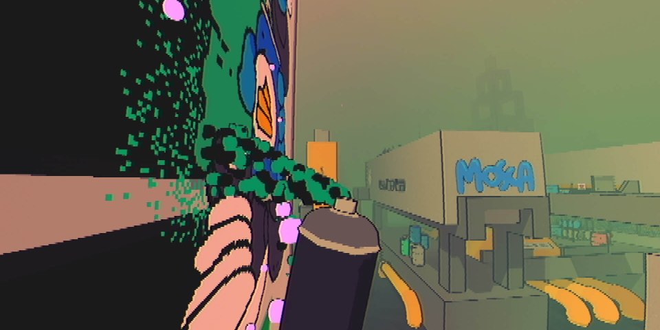 Sludge Life doesn’t have missions or quest lines to follow. You can wander around aimlessly, experiencing the emulated thrill of vandalism and graffiti culture that tinged Doseone’s actual youth. He wanted to incorporate stories and characters from his memory into the world of Sludge Life, and as someone with a vague connection to the 90’s era of New York City graffiti culture, it hits the mark perfectly. You’ve got characters like Big Mud, who produces slick rap hits and boasts about all of this awesome tagging he totally did when he was younger (and which isn’t completely lying about for false cred). Or, you can encounter a chill graffiti artist with the head of a horse-fly who just wants to smoke and collab on dope tags.
