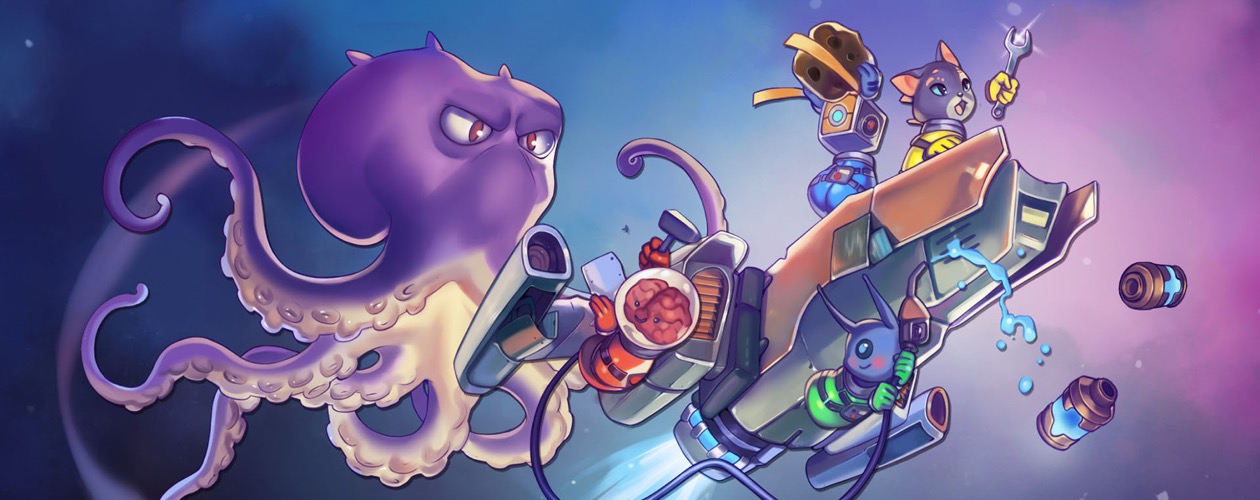 Fueled Up then, is a four-player co-op party game thing. Rather than take on the role of chaotic chefs, players are instead members of a deep space recovery team; one that is tasked with repairing and rescuing damaged spaceships. Viewed from a top-down perspective, four players, over local or online play, need to work together to solve a furious time-based puzzle. Each busted-up, broken-down spaceship must be kept refuelled, repaired, and fire-free until it safely returns to its base. Oh, and it must avoid the deadly giant space octopus.