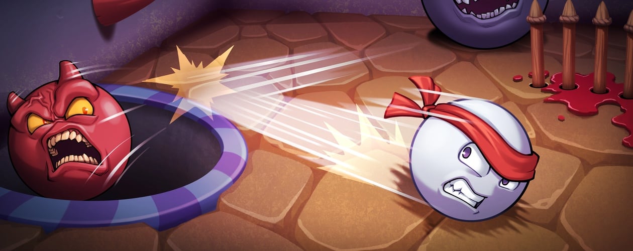 For one thing, pockets are located in random places, sometimes the traditional corners, and sometimes in the middle of the table, and they can be different sizes. For another, there’s other hazards to watch out for, with wall spikes, bombs, bear traps, and portals all posing a risk to your billiard ball. Your billiard ball has a health bar too, with any unwanted impact doing a point damage.