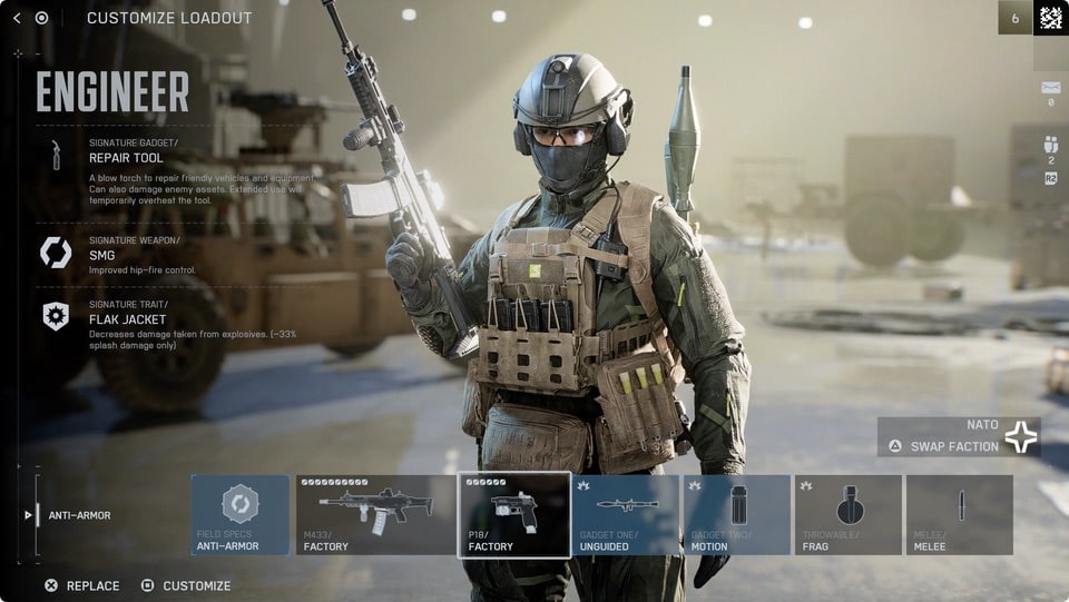 Battlefield 6 Engineer class loadout screen