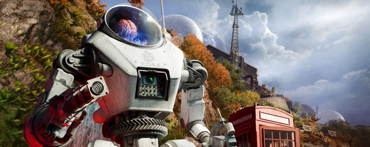 Details are very thin on the ground right now, but there’s a big new robot in town, seemingly taking a smidgeon of inspiration from RoboCop by shoving a brain up into the glass jar on top, and from Doctor Who Daleks for the voice box. Intriguingly, there’s a new acronym organisation involved here, as C.O.R.E. is stamped across the front of the robot’s chest and we see an ominous looking entrance hall to the institution, as well as some reddish mists to contrast with the main game’s blueish hues.
