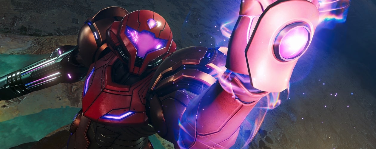 So, Samus has been stripped of many of her abilities, but the artefact has seen fit to grant her with some new ones. Psychic ones! Samus’ visor? That’s psychic now. Her armour? It’s enhanced with a new psychic glove. Her morph ball? It lays psychic bombs. But this does all come to mean something more than just making everything purple – the most psychic of colours, as we all know. When scanning the environment, Samus can now spot things like power nodes and door locking mechanisms, reaching out to manipulate them in various ways as part of the environmental puzzling. Similarly, you quickly gain the ability to fire off a charged shot and then guide it remotely with the world in super slow motion.