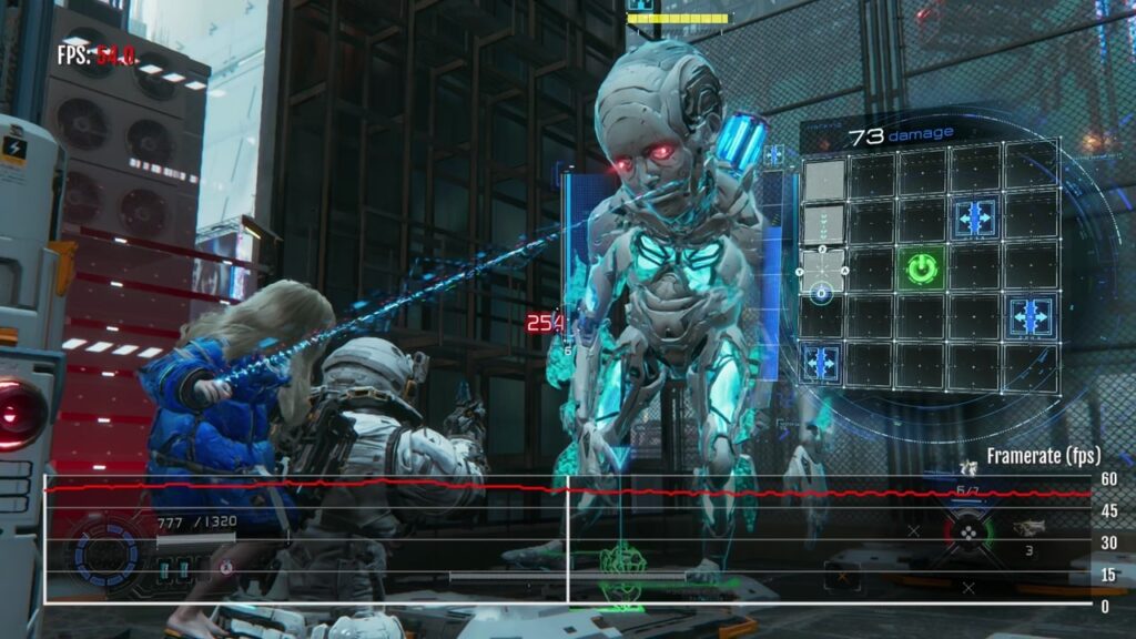 Despite all of these tradeoffs, Switch 2 cannot hold onto a fixed 60fps and is instead more variable – as already seen with the Sketchbook demo released earlier this year. This is, of course, much more of an issue when playing docked where VRR isn’t possible on Switch 2, while handheld play does have VRR and can compensate for some of this variability. In both scenarios I found it remained very playable and enjoyable, thanks to the pace of the moment-to-moment gunplay and hacking mechanics, though it does feel more cramped on the smaller screen and I had a few problems handling Pragmata’s screen-filling bosses. If you can, this is a game best experienced on the big screen, and in that case, you might want to consider other platforms.