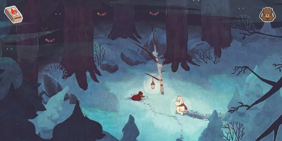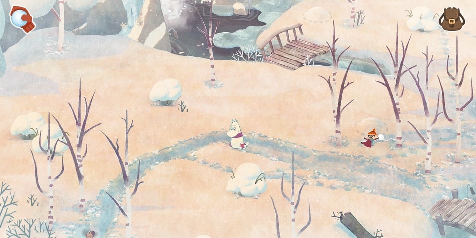 Similarly to Snufkin: Melody of Moominvalley, Moomintroll encounters some regulars of Moominvalley as well as some new beings – the Winter Beings that come out when the snows fall. As Moomintroll meets the different characters he gets given quests to complete, with a lot of these being based on finding things for others. To assist in this, Moomintroll gradually acquires tools which are used to open up new pathways and reach new places. These include matches to light up the way in dark areas, a shovel to clear areas of deep snow, axe to chop wood and ice, and mittens to throw snowballs.
